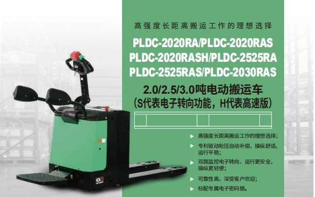 三菱叉車 PLDC-2020RA 2.0噸電動搬運車高強度長距離搬運工作的理想選擇;專利驅動輪壓自動補償,操縱舒適、?運行平穩;雙路監控電子轉向,運行更安全,操縱更輕便;可靠性高,深受客戶歡迎;標配專屬電子密碼鎖。密碼鎖定拒絕無關人員運行設備,更加安全。速度可...